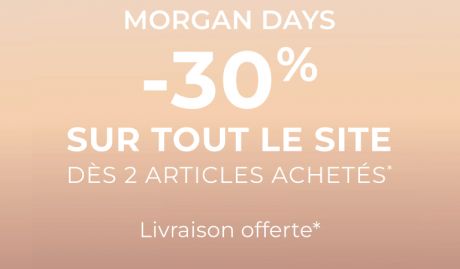 *Mentions légales : 15€ de remise tous les 70€ d’achat valable sur la collection disponible en boutique et sur le web. Offre valable du mercredi 24 septembre au jeudi 2 octobre 2025 inclus dans les boutiques Morgan situées en France, Belgique et au Luxembourg ainsi que sur les sites morgandetoi.fr et morgandetoi.be. Offre complémentaire avec les offres fidélités du programme Morgan de Vous (en boutique uniquement). Remise effectuée immédiatement en caisse en boutique et au panier sur le web. Offre non valable sur l'achat de cartes-cadeaux ni sur les produits de licences, le tee-shirt « Joséphine », les Bons Plans et sur les bijoux. Offre non cumulable avec d'autres opérations ou promotions en cours.